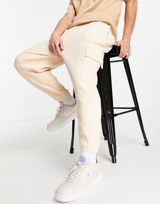 ASOS DESIGN co ord wide leg waffle t shirt and joggers in beige