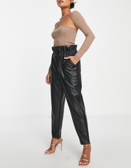 Miss Selfridge Petite faux leather jogger trouser in black ASOS