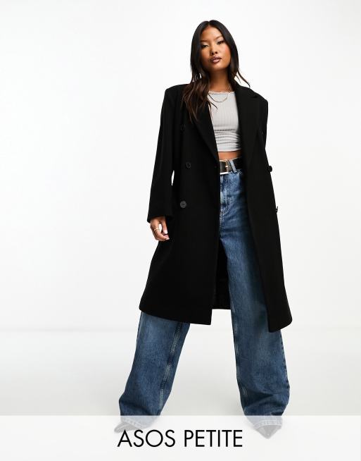Manteau outlet noir asos, ASOS DESIGN Petite Manteau dad mi long Noir outlet