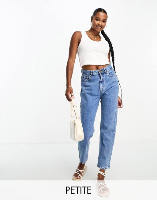 Pull Bear Petite Jean mom taille haute Bleu moyen