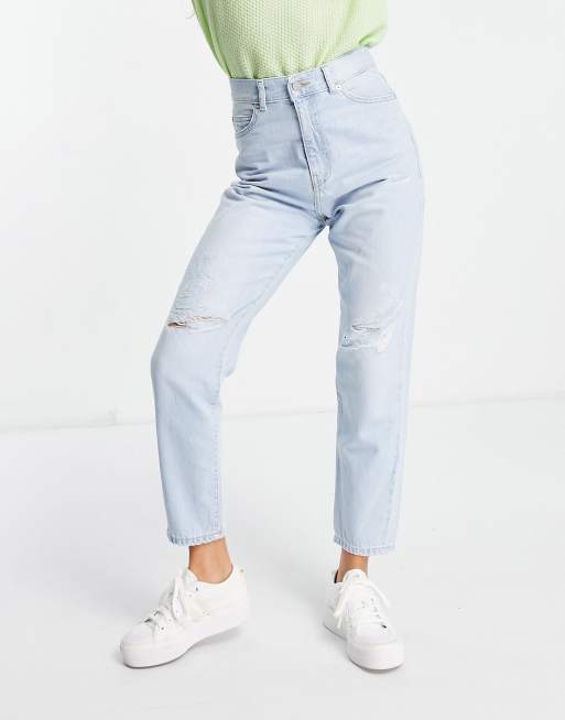 Dr Denim Petite Nora Jean mom taille haute d chir aux genoux Bleu d lav