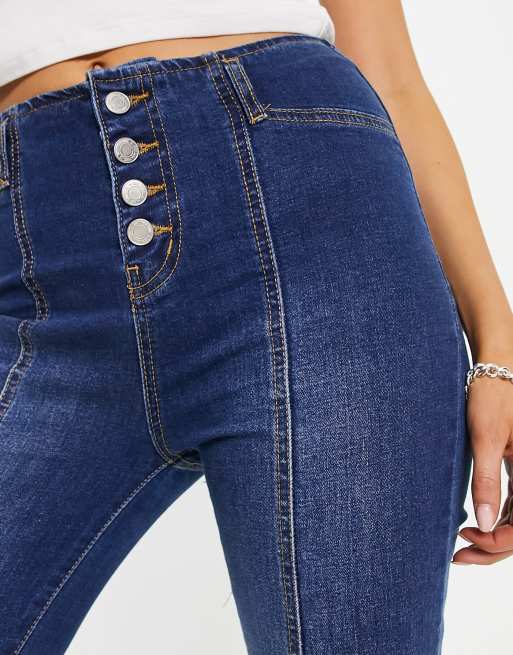 Jean taille outlet haute boutonné, Jeans taille haute boutonn pour femme pantalon en denim outlet