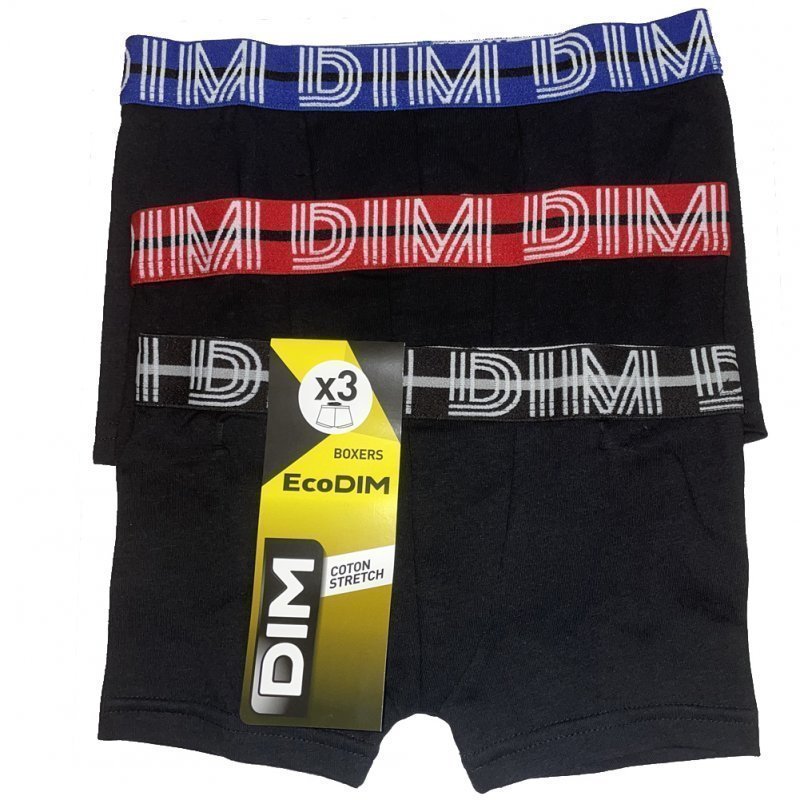 Lot de 3 DIM Boxer Gar on Coton STRETCH Noir Bleu Rouge au