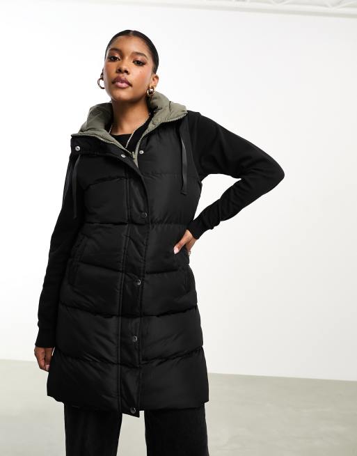 Threadbare Morticia Veste sans manches longue et r versible Noir et kaki