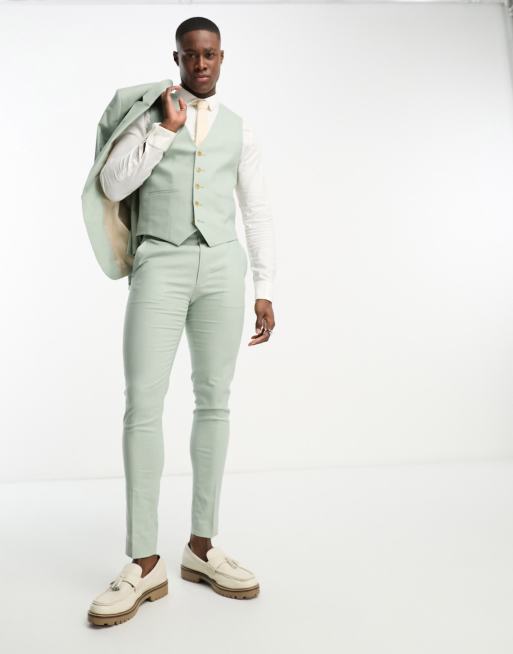 ASOS DESIGN Gilet de costume ultra ajust en lin m lang Vert