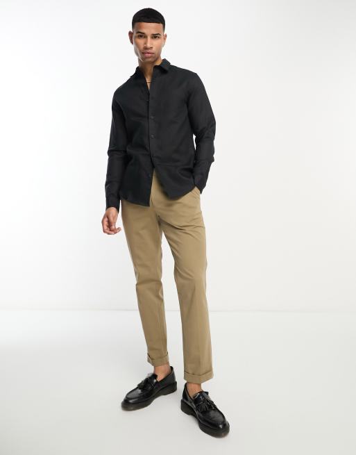 ASOS DESIGN Chemise classique habill e en lin Noir ASOS