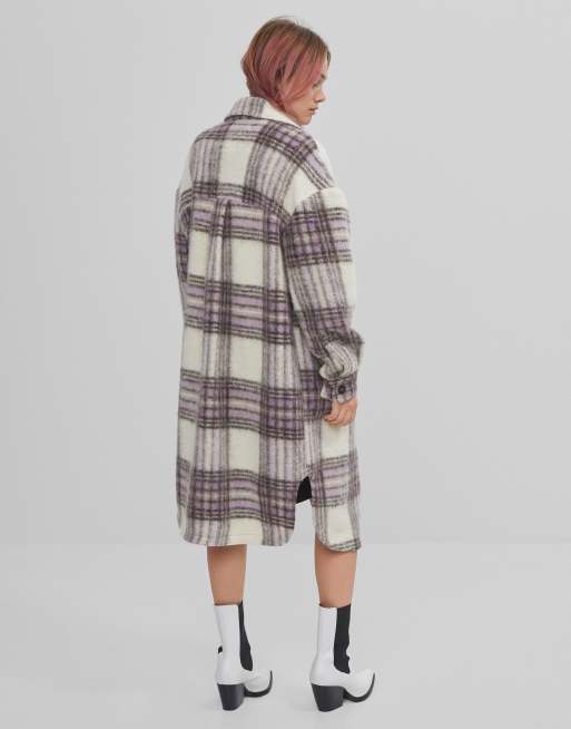 Bershka Surchemise longue effet bross Carreaux Lilas
