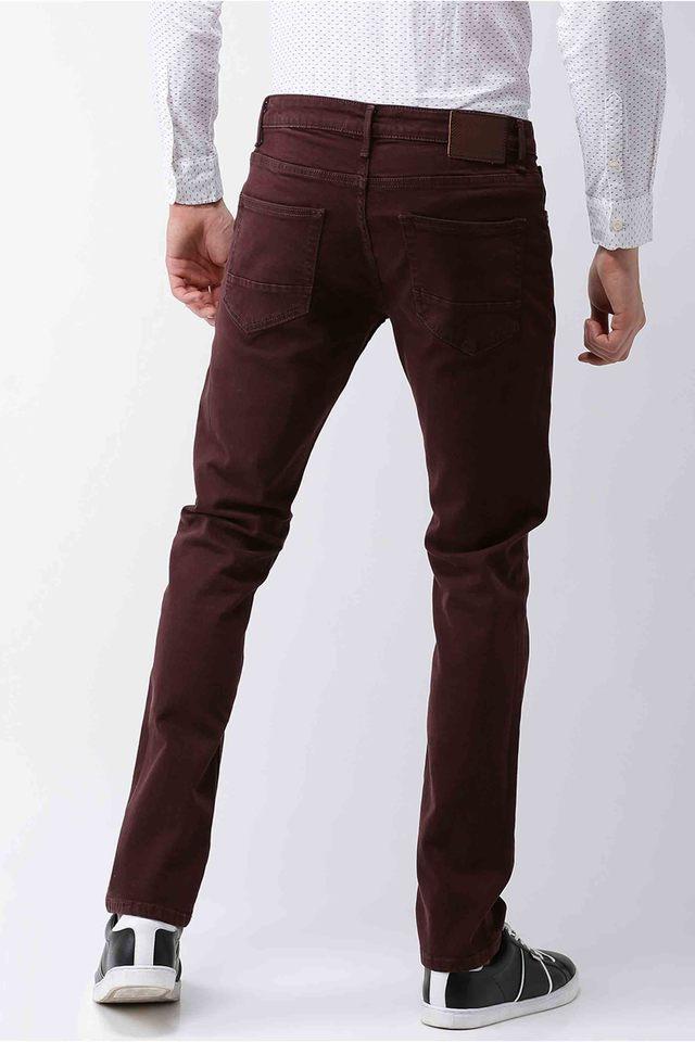 Buy CELIO JEANS Burgundy Mid Tone Wash Cotton Slim Fit Mens Jeans