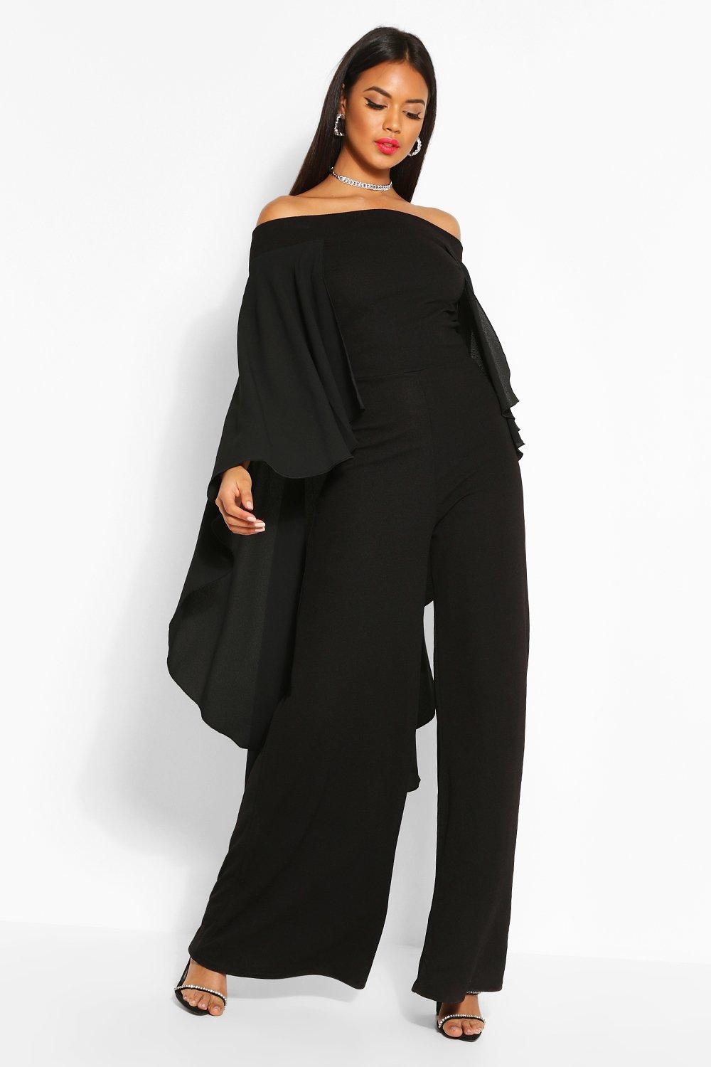 Combinaison pantalon outlet ample femme, Combinaison large paules d nud es et cape boohoo outlet