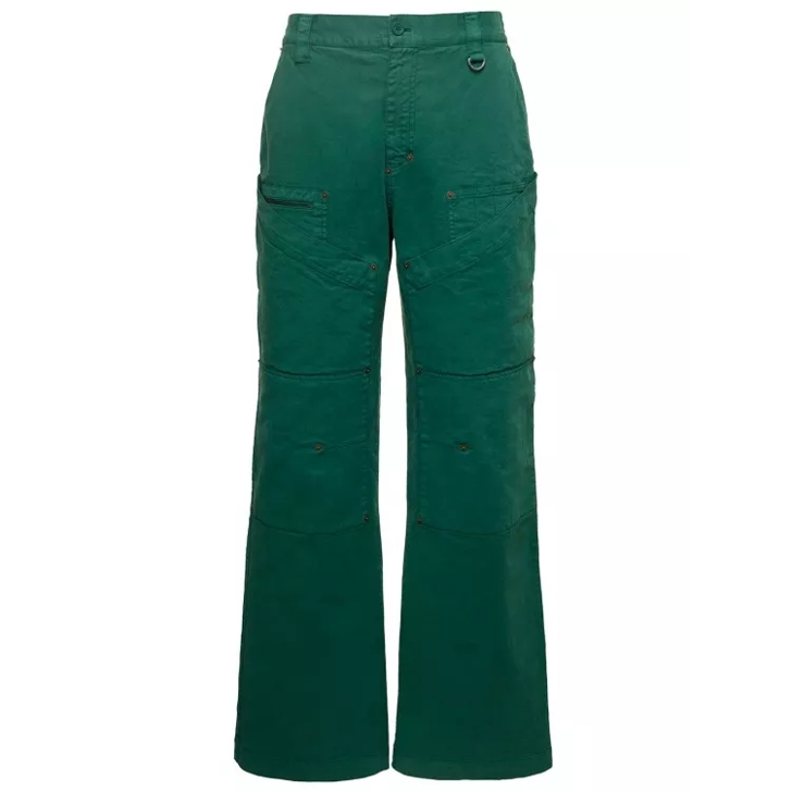 Marine Serre Green Wide Leg Jeans With Contrasting Logo Embroid