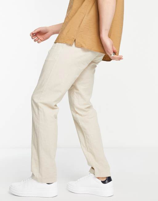 Selected Homme Pantalon droit en lin m lang Beige ASOS