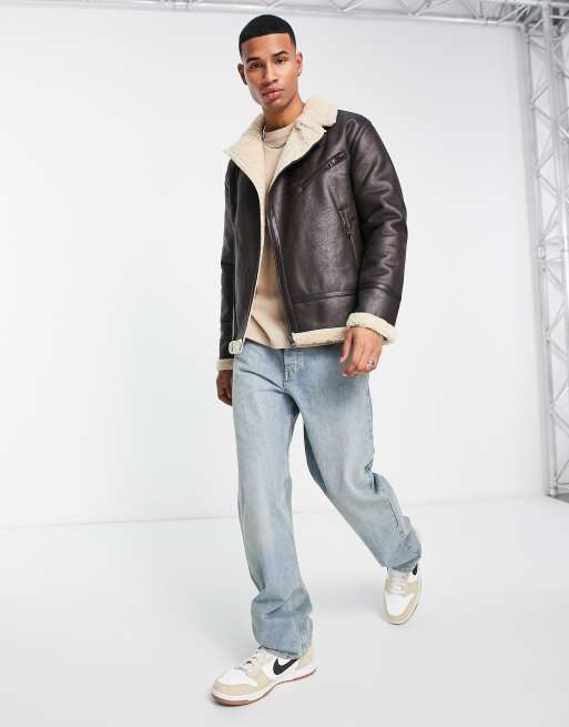 Only Sons Blouson aviateur en similicuir avec doublure en