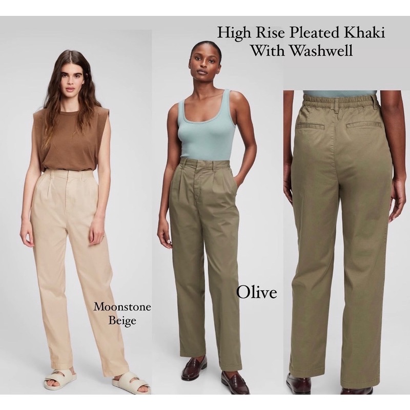 Pantalones mujer Gap High Rise plisado caqui con Washwell