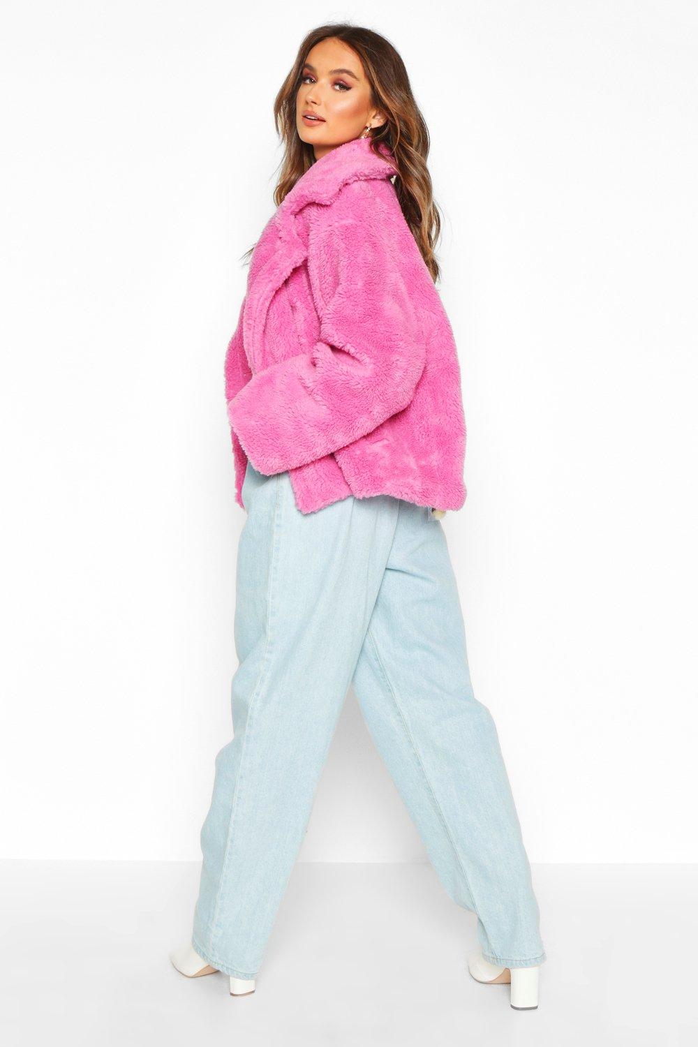 Manteau d hiver en fausse fourrure de Teddy rose pour femmes