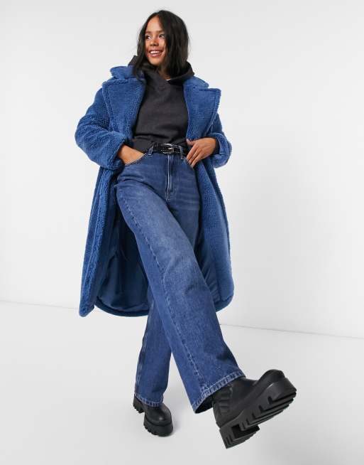 Only Manteau teddy oversize Bleu