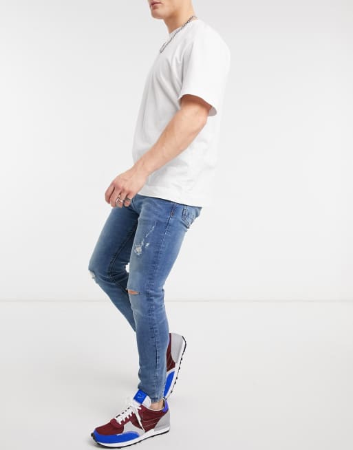 Pull Bear Jean super skinny d chir aux genoux Bleu clair