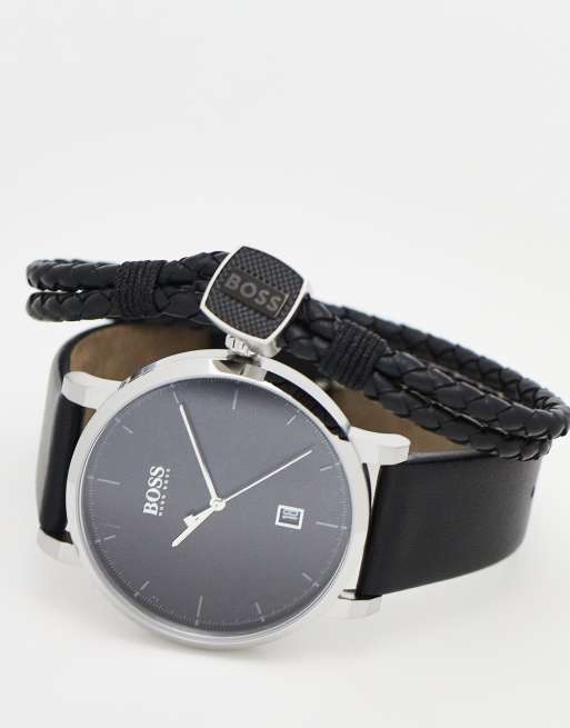 Boss Coffret cadeau montre homme et bracelet en cuir Noir ASOS