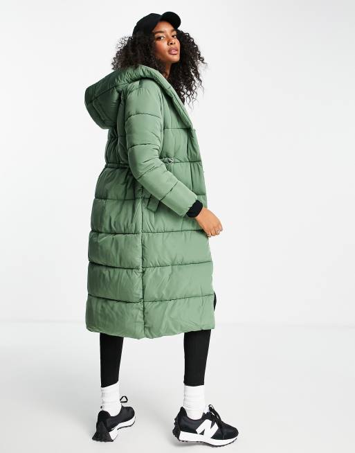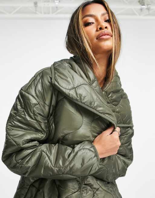 River Island Manteau long matelass col ch le Vert sauge ASOS