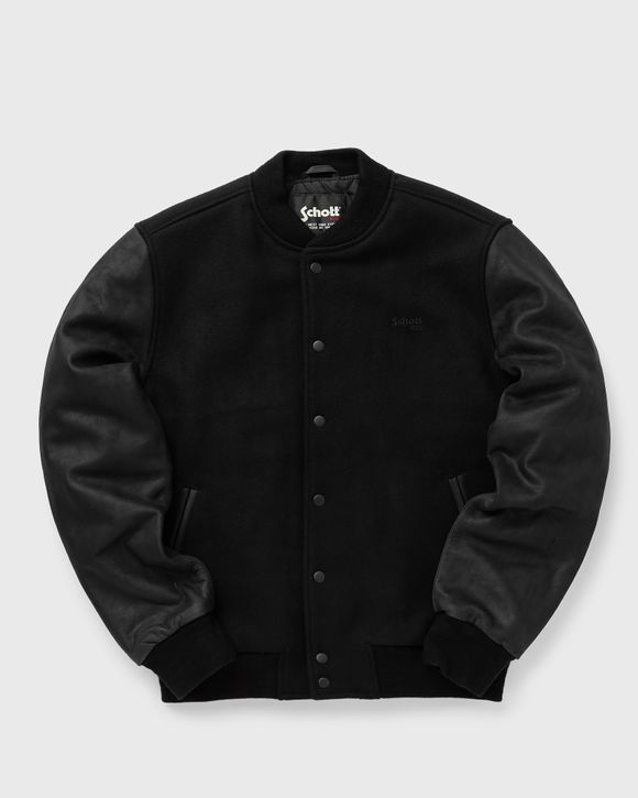 Schott NYC BLOUSON UNIVERSITE BI MATIERE CUIR LAINE Black BLACK BLACK