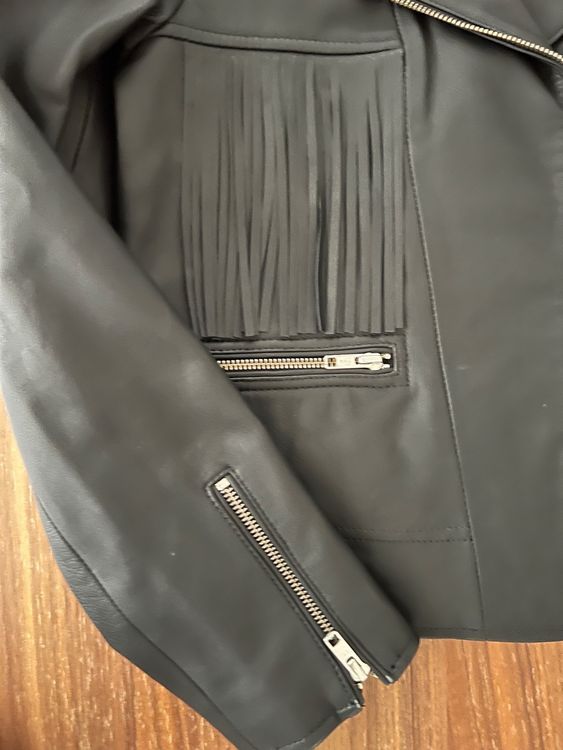 Perfecto en Cuir Noir avec des franges Claudie Pierlot Acheter