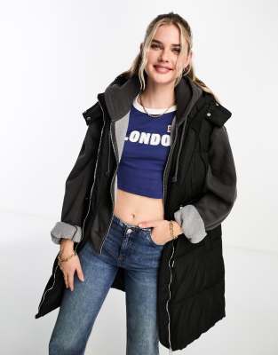 Pull Bear Longline Padded Vest With Hood In Black ModeSens