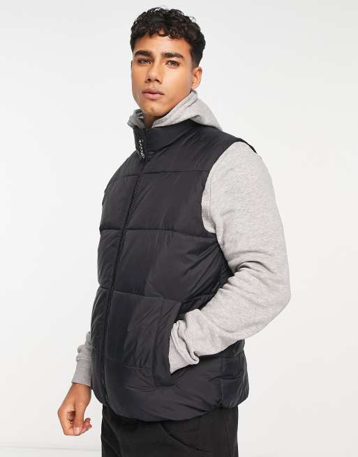 Pull and outlet bear vest, Pull Bear lightweight puffer vest in black ASOS outlet