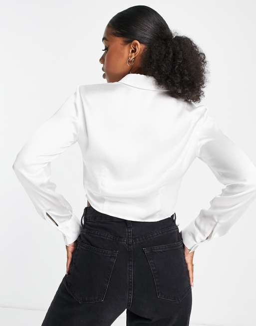 Stradivarius Chemise corset en satin Blanc