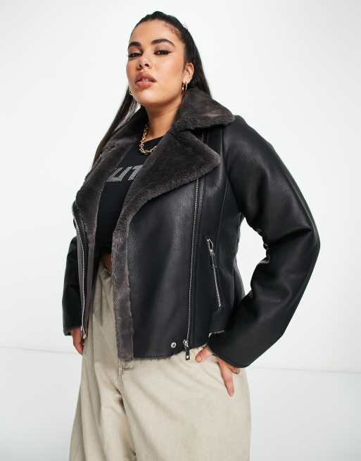 Mango Blouson aviateur doubl en fausse fourrure Noir