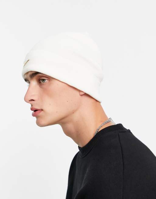 Nike cuffed Swoosh beanie in white