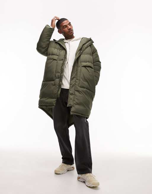 Topman Doudoune longue ourlet plongeant Kaki ASOS