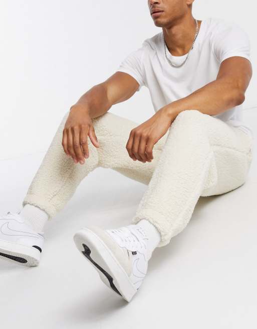 ASOS DESIGN co ord oversized teddy borg sweatpants in off white