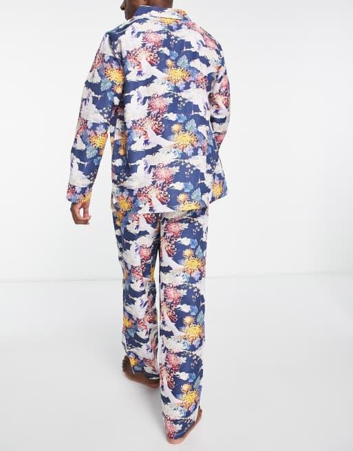 ASOS DESIGN woven pajama set with long sleeve shirt and pants in multi floral print