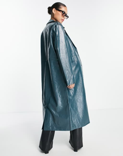 4th Reckless Manteau long en similicuir verni Bleu p trole