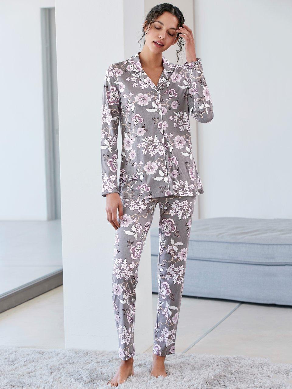 Pyjama long Ringella en coton tee shirt manches longues et col v