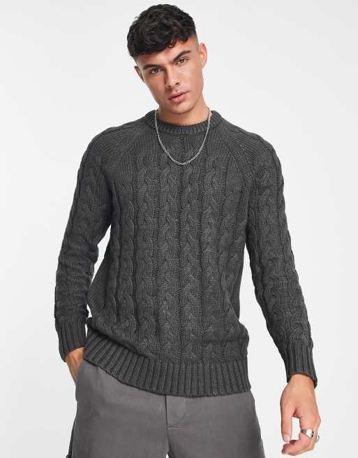 Selected Homme Pull en maille torsad e oversize Gris fonc