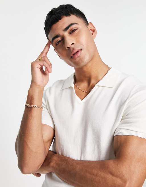 Gianni Feraud Pull manches courtes et encolure ouverte Blanc