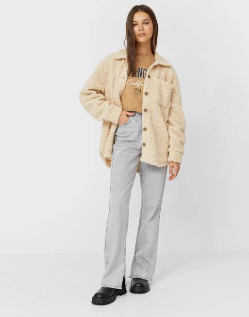Stradivarius Veste fa on surchemise en imitation peau de mouton Beige