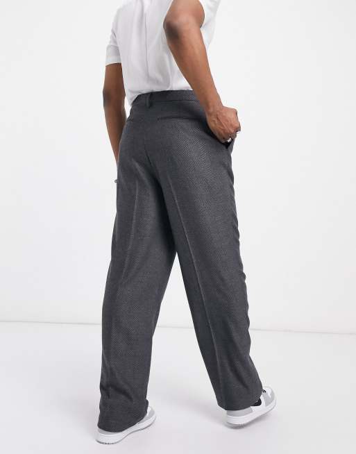 ASOS DESIGN Pantalon large l gant taille haute en m lange de laine Anthracite