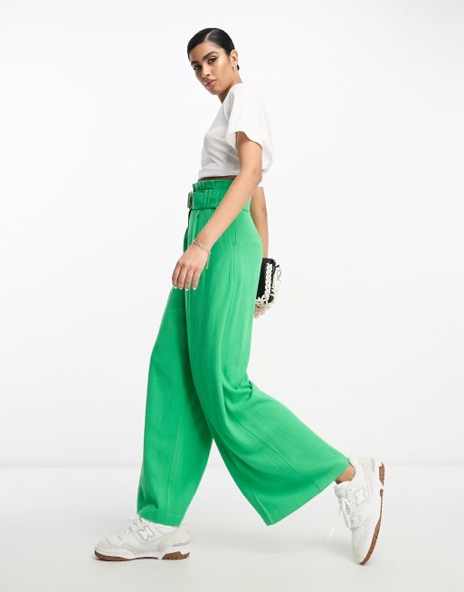 Pantalon oversize outlet taille haute, ASOS DESIGN Pantalon large en lin m lang taille haute fronc e Vert outlet