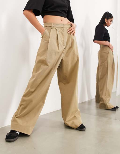 ASOS EDITION Pantalon large et d contract en serg de coton Taupe