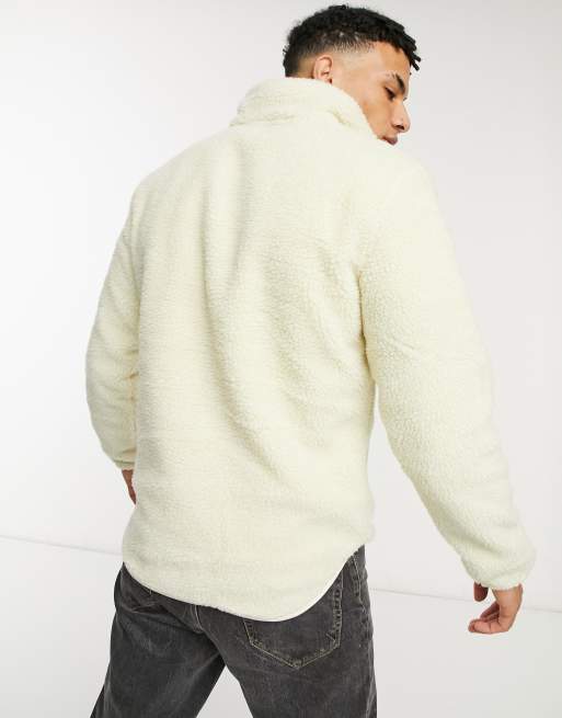 Veste outlet polaire beige, Selected Homme fleece jacket with nylon pocket in beige outlet