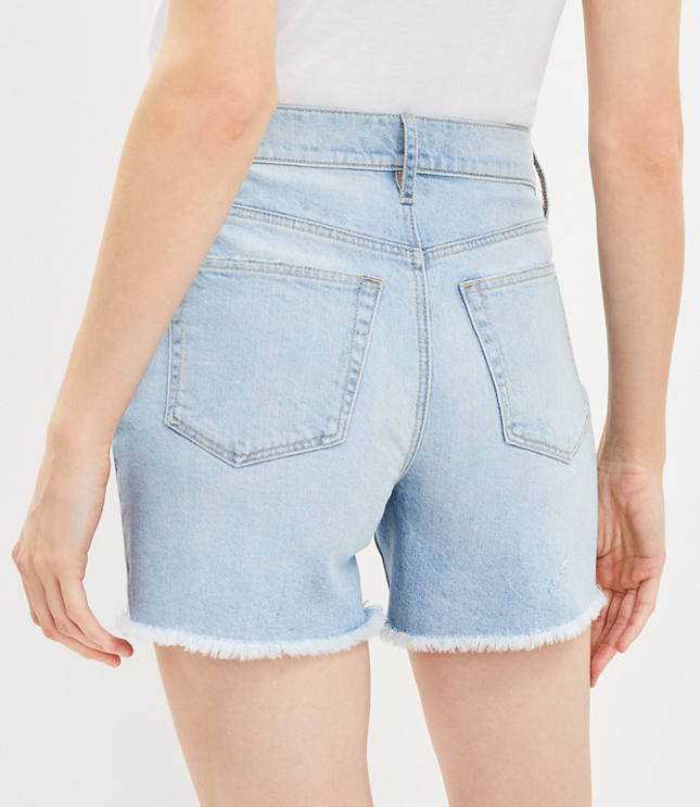 Fresh Cut Girlfriend Denim Shorts in Destructed Indigo Wash