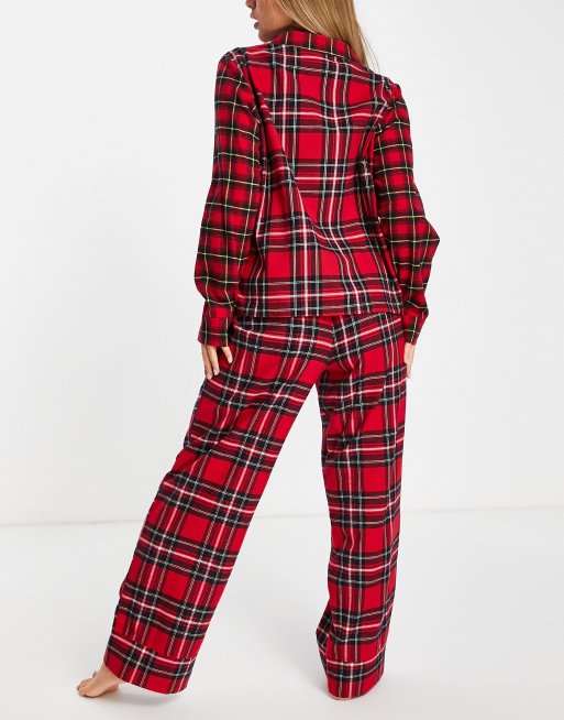 Bas de pyjama outlet tommy hilfiger femme, Tommy Hilfiger Ensemble de pyjama en coton biologique et flanelle carreaux avec col revers Rouge outlet