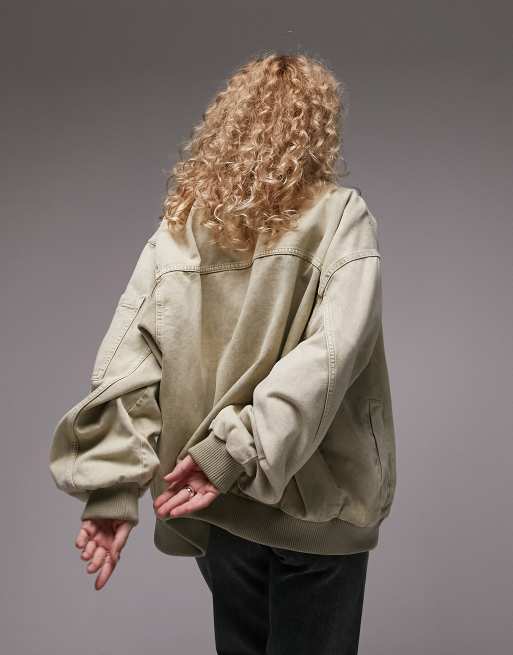 Topshop Bomber oversize en coton d lavage prononc Kaki