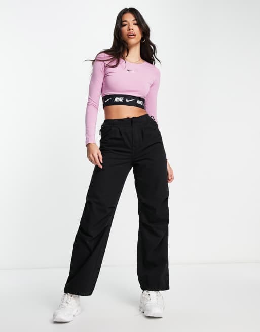 Nike Repeat Tape detail long sleeve crop top in pink ASOS