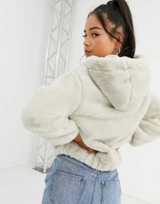 Manteau outlet reflechissant bershka, Bershka Faux Fur Zip Up Coat With Hood In Light Gray 55 OFF outlet