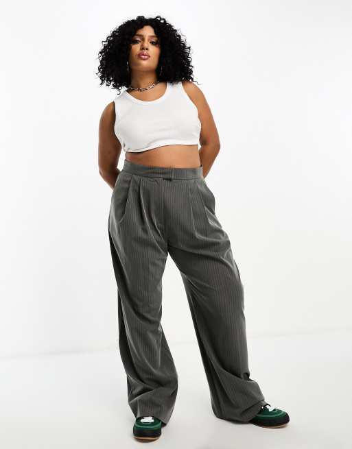 ASOS DESIGN Curve Pantalon large pinces Gris ray