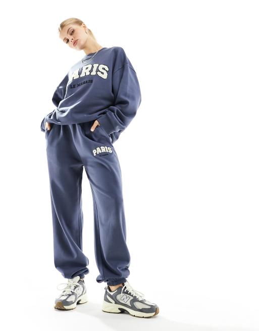 Asos tenue outlet de sport, ASOS DESIGN Pantalon de jogging d ensemble oversize imprim Paris Bleu marine clair outlet