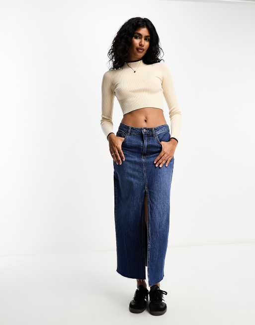 Pull col outlet montant bershka, Bershka Pull court col montant avec bordure contrastant Beige outlet