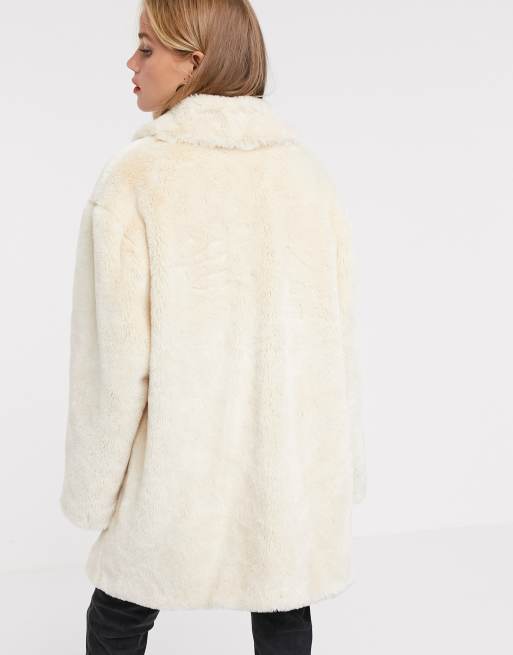 ASOS DESIGN Manteau boutonn en fausse fourrure Cr me
